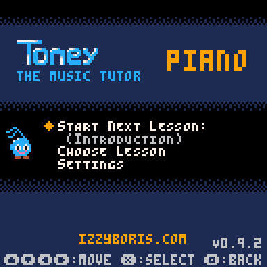 - Keyboard "X" (PICO-8 "X" button): Select item/note/continue